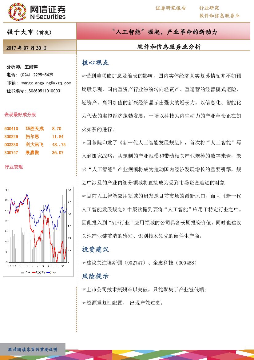 网信证券:软件和信息服务业分析:“人工智能”崛起,产业革命的新动力.pdf