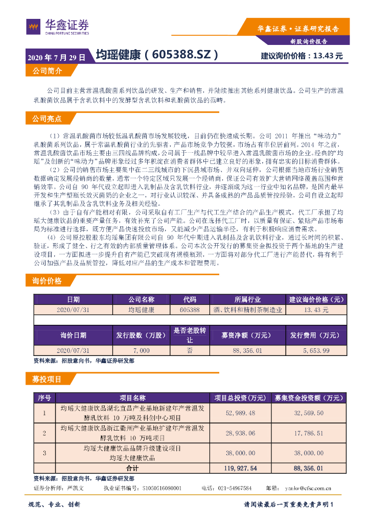 华鑫证券:新股询价报告:均瑶健康.pdf