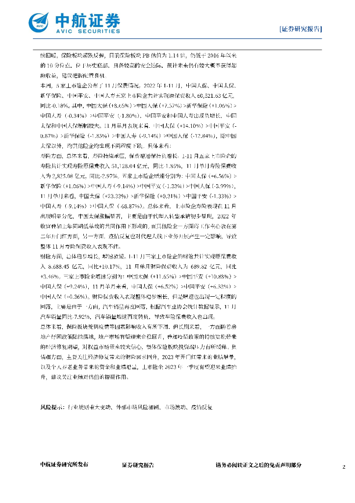 中航证券:非银行业周报(2022年第四十五期):11月保费增速放缓,2023年有望迎来业绩回升.pdf
