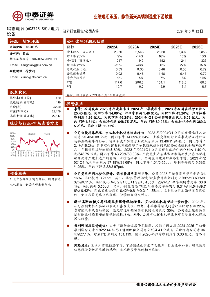 中泰证券:鸣志电器(603728)-业绩短期承压,静待新兴高端制造业下游放量.pdf