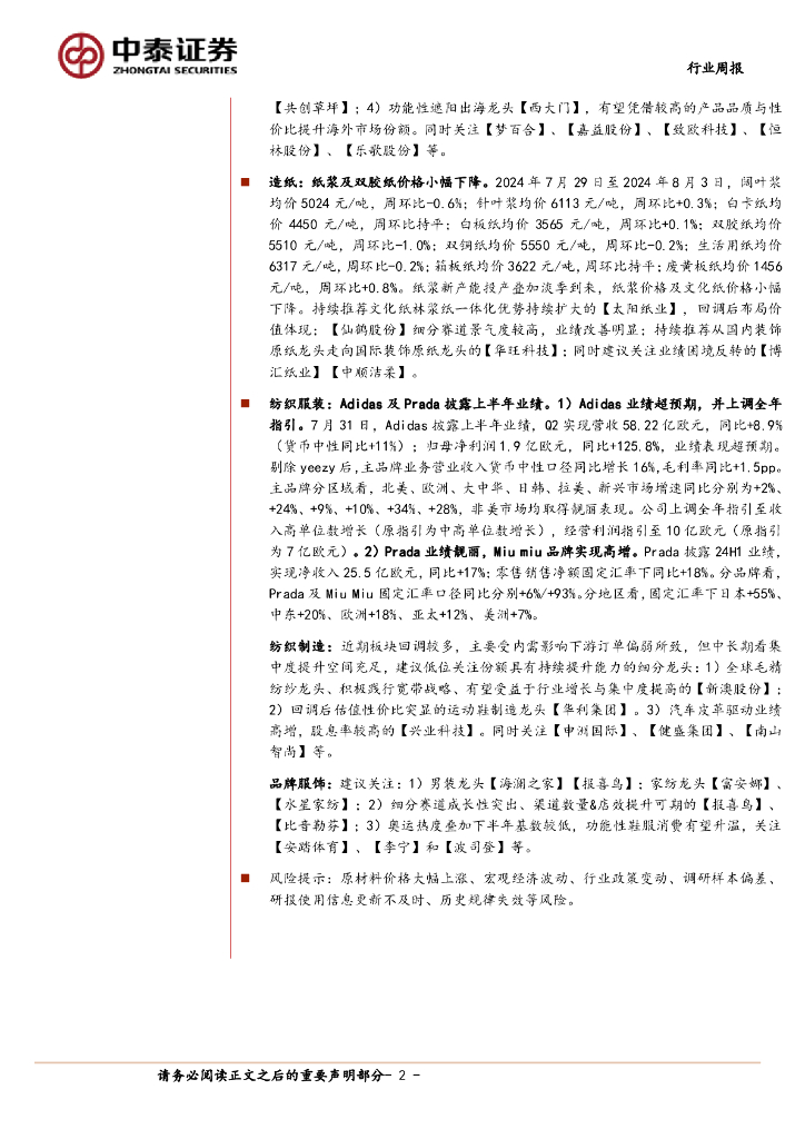 中泰证券:轻工制造及纺织服装行业周报:促消费政策频出家居需求有望改善,Adidas、Prada业绩靓丽.pdf