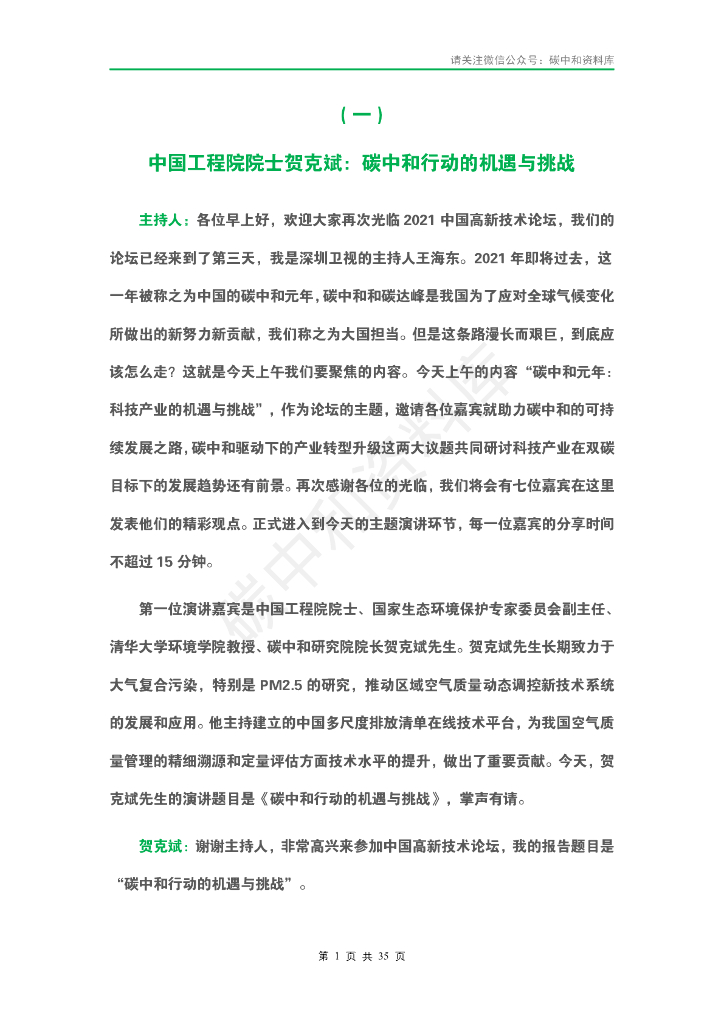 2021中国高新技术论坛” 碳中和元年 : 科技产业的机遇与使命”专家演讲实录.pdf