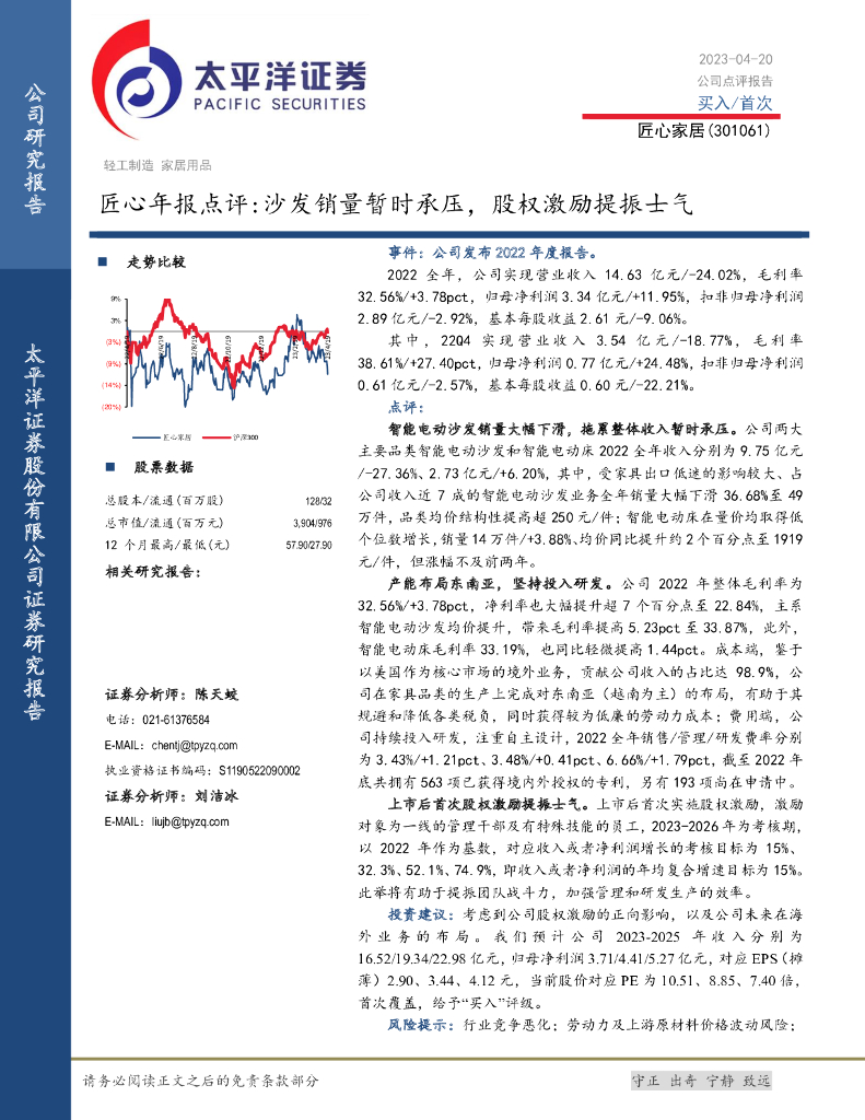 太平洋证券:匠心家居(301061)-匠心年报点评:沙发销量暂时承压,股权激励提振士气.pdf