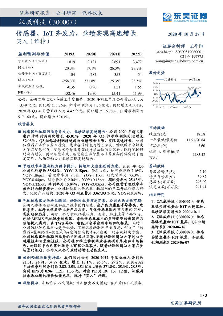 东吴证券:汉威科技(300007)-传感器、IoT齐发力,业绩实现高速增长.pdf