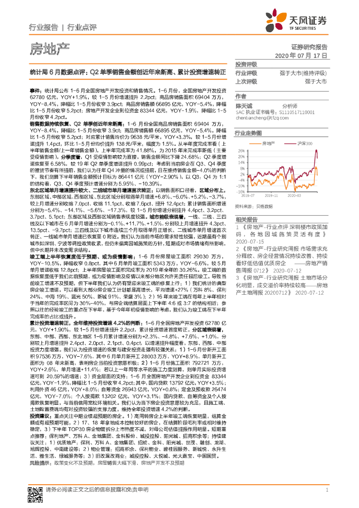 天风证券:房地产统计局6月数据点评:Q2单季销售金额创近年来新高、累计投资增速转正.pdf