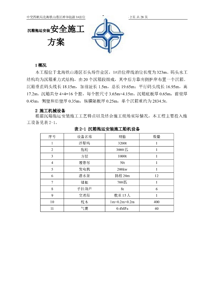 沉箱拖运安装安全施工方案(26页,清楚明了).doc