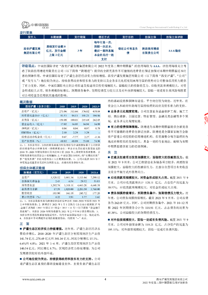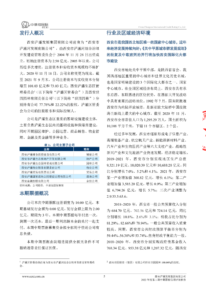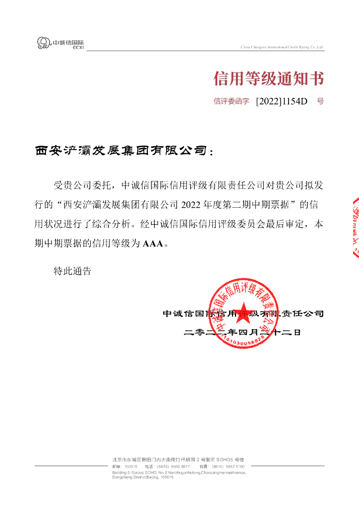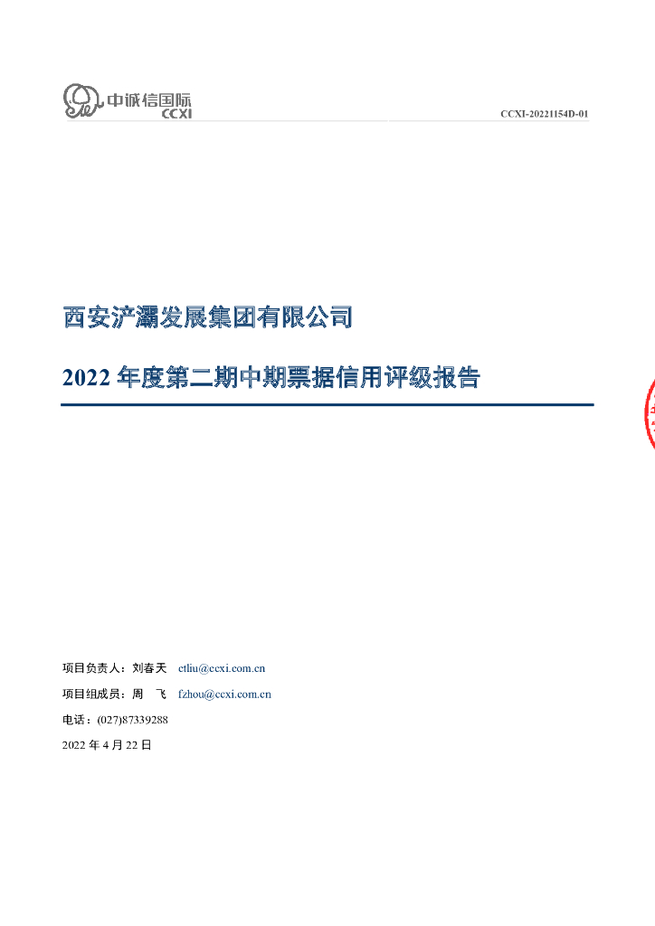 中诚信:西安浐灞发展集团有限公司2022年度第二期中期票据信用评级报告.pdf