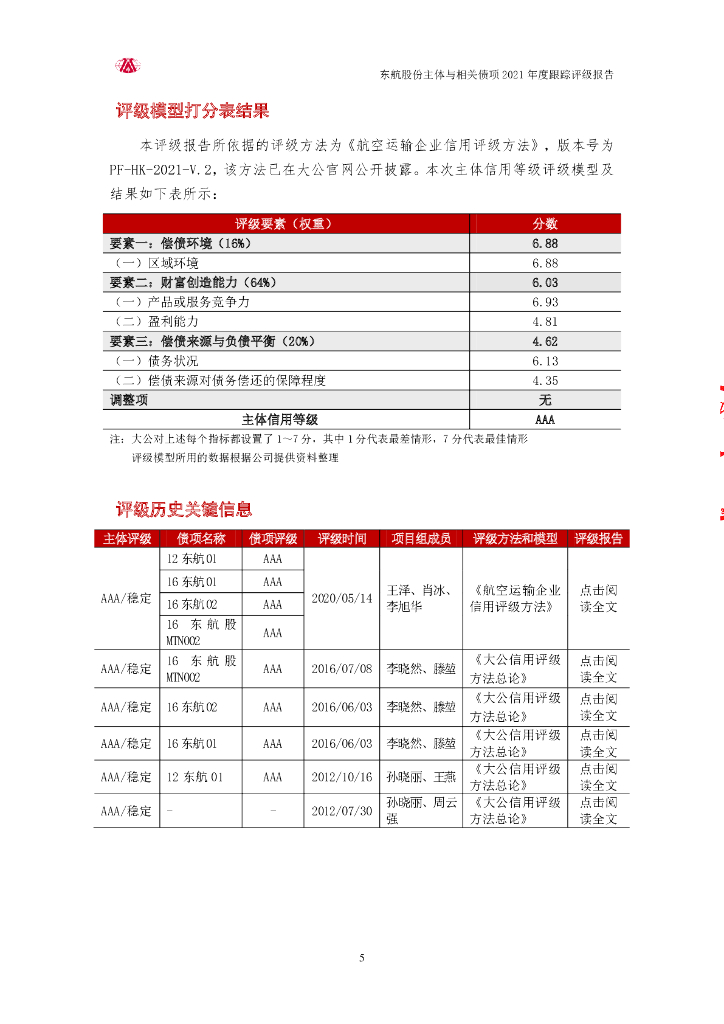 大公:中国东方航空股份有限公司主体信用评级报告及跟踪评级安排.pdf