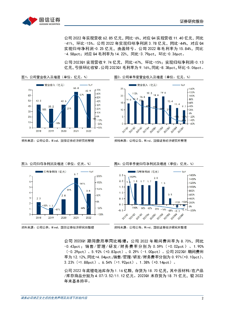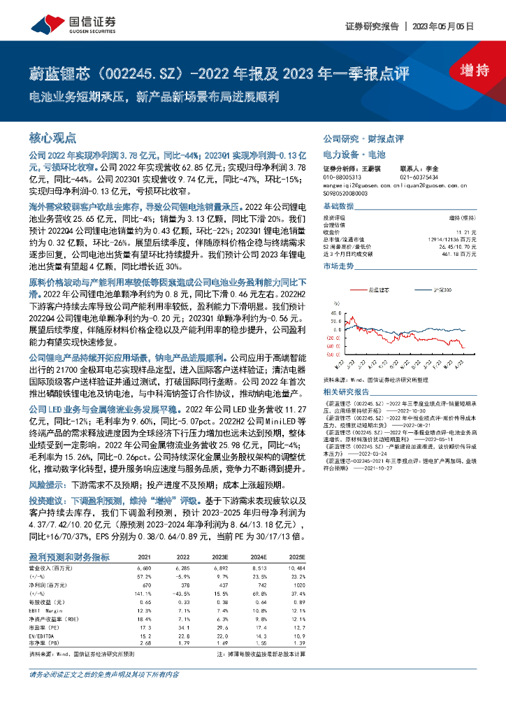 国信证券:蔚蓝锂芯(002245)-2022年报及2023年一季报点评:电池业务短期承压,新产品新场景布局进展顺利.pdf