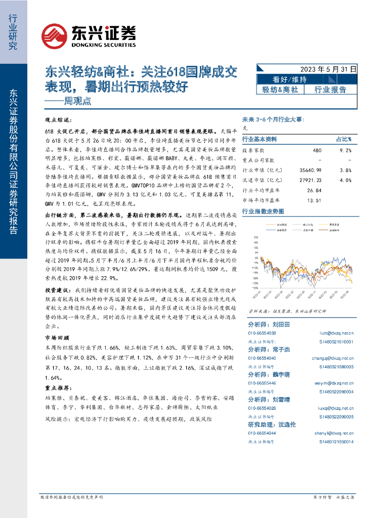 东兴证券:轻纺&商社周观点:东兴轻纺&商社:关注618国牌成交表现,暑期出行预热较好.pdf
