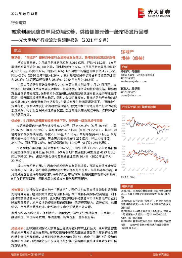 光大证券:光大房地产行业流动性跟踪报告(2021年9月):需求侧居民信贷单月边际改善,供给侧美元债一级市场发行回暖.pdf