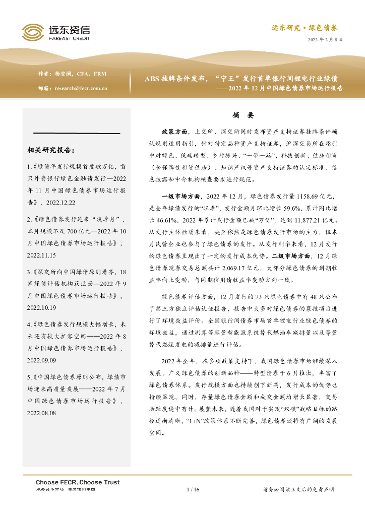 远东资信:ABS挂牌条件发布,“宁王”发行首单银行间锂电行业绿债—2022年12月中国绿色债券市场运行报告.pdf
