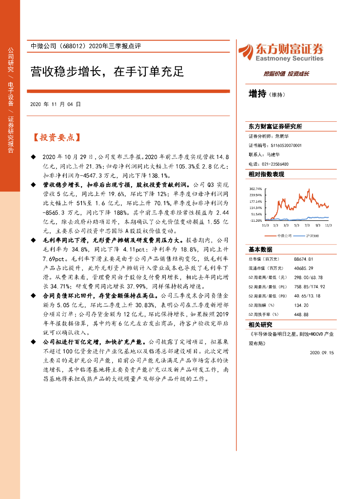 东方财富证券:中微公司(688012)-2020年三季报点评:营收稳步增长,在手订单充足.pdf