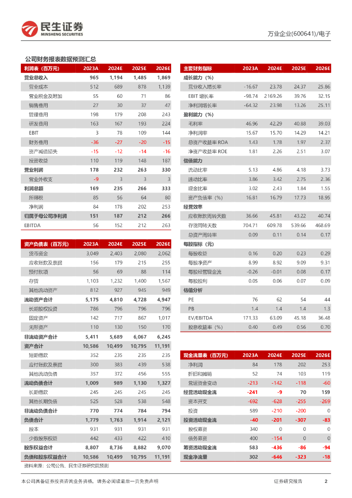 民生证券:万业企业(600641)-2023年年报&2024年一季报点评:凯世通+嘉芯双线发展,半导体业务稳健成长.pdf