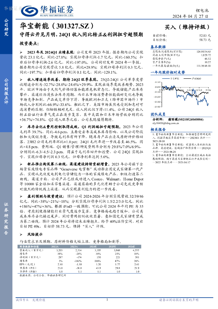 华福证券:华宝新能(301327)-守得云开见月明,24Q1收入同比转正&利润扭亏超预期.pdf