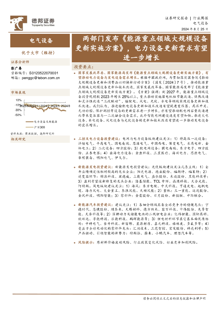 德邦证券:电气设备行业周报:两部门发布《能源重点领域大规模设备更新实施方案》,电力设备更新需求有望进一步增长.pdf