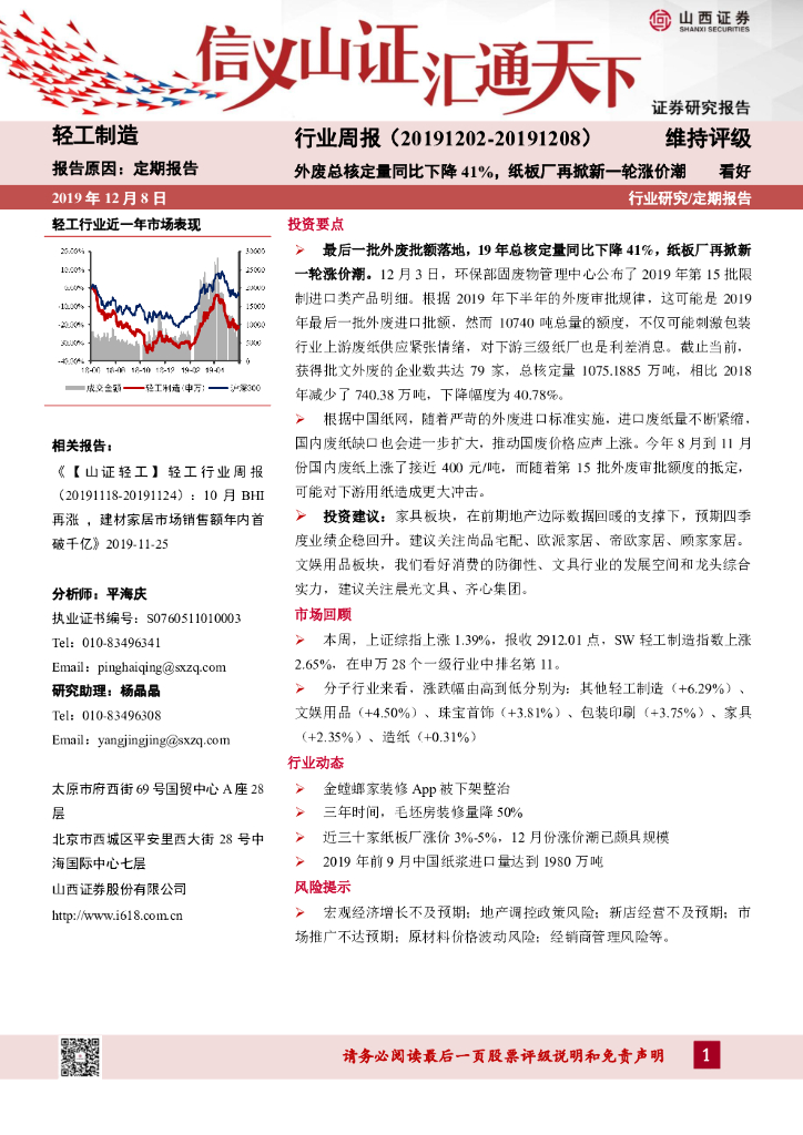 山西证券:轻工制造行业周报:外废总核定量同比下降41%,纸板厂再掀新一轮涨价潮.pdf
