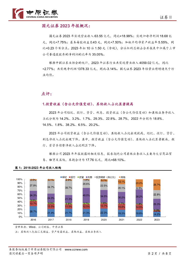 中原证券:国元证券(000728)-2023年年报点评:合并口径权益类及衍生品投资大幅扭亏为盈.pdf