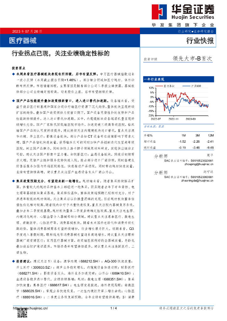 华金证券:医疗器械行业快报:行业拐点已现,关注业绩确定性标的.pdf