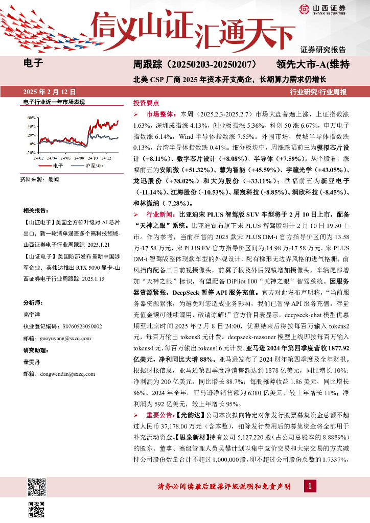 山西证券:电子周跟踪:北美CSP厂商2025年资本开支高企,长期算力需求仍增长.pdf