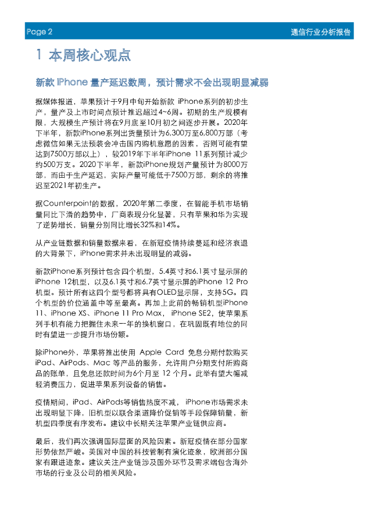 首创证券:通信行业周报:新款iPhone量产延迟数周,预计需求不会出现明显减弱.pdf