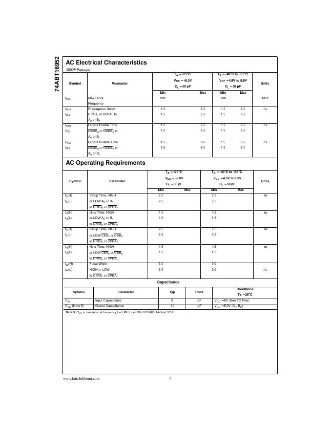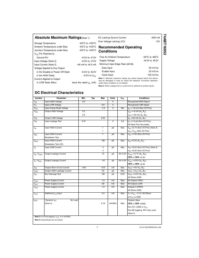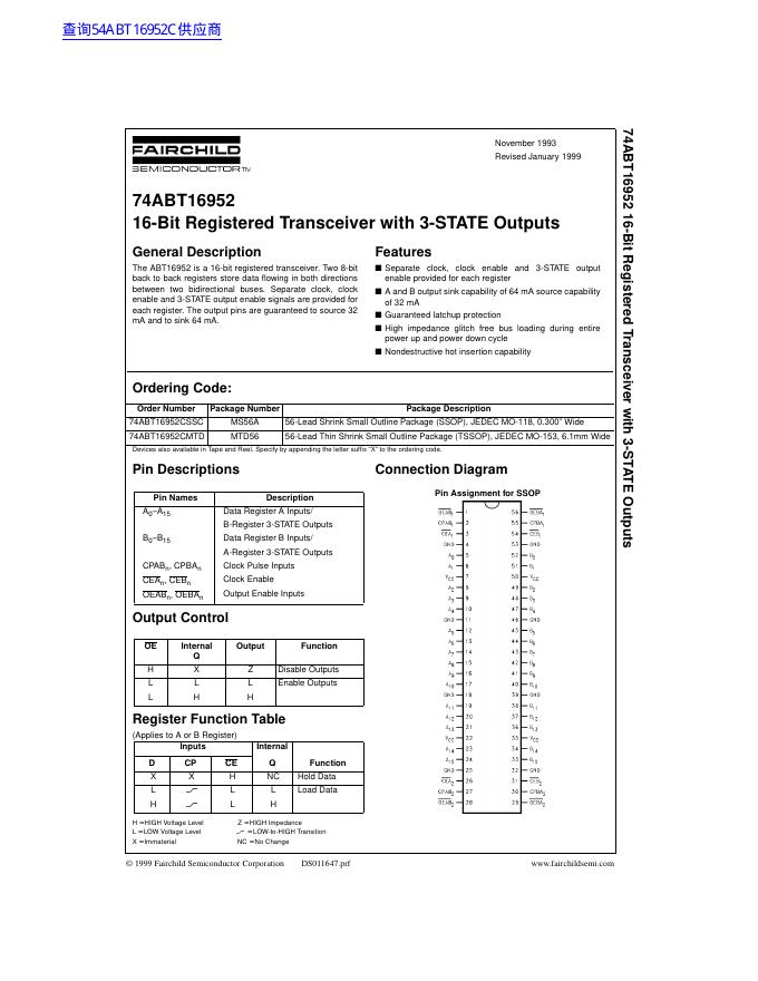 FAIRCHILD 74ABT16952 16-Bit Registered Transceiver with 3-STATE Outputs 数据手册.pdf