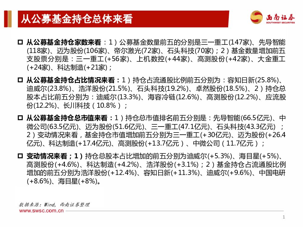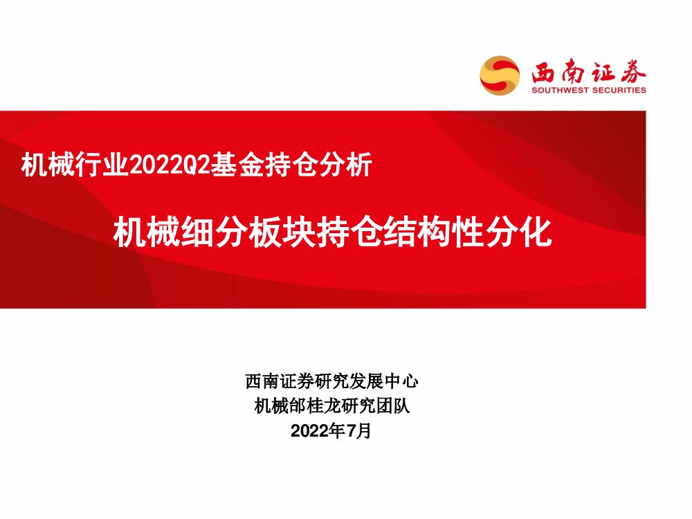 西南证券:机械行业2022Q2基金持仓分析:机械细分板块持仓结构性分化.pdf