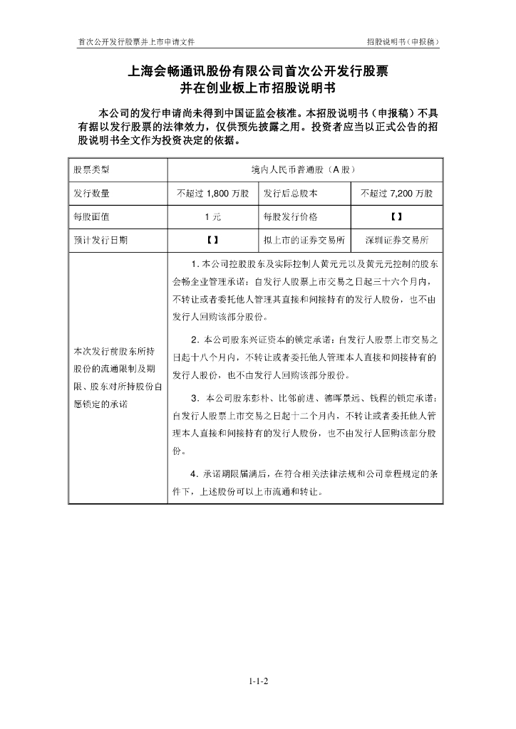 上海会畅通讯股份有限公司深交所创业板IPO上市招股说明书.pdf