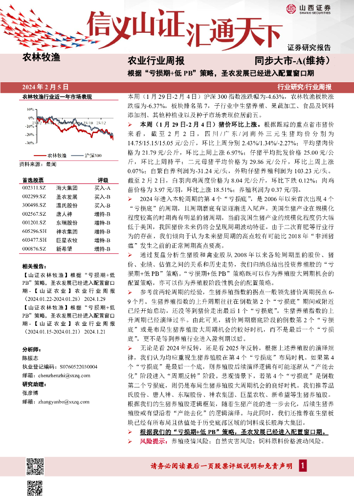山西证券:农业行业周报:根据“亏损期+低PB”策略,圣农发展已经进入配置窗口期.pdf