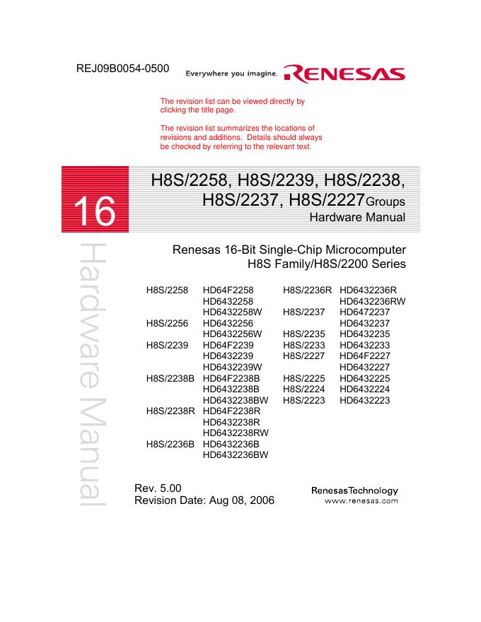 RENESAS H8S/2258, H8S/2239, H8S/2238, H8S/2237, H8S/2227 Groups 硬件手册.pdf