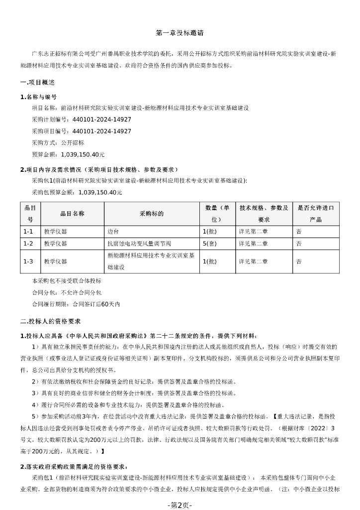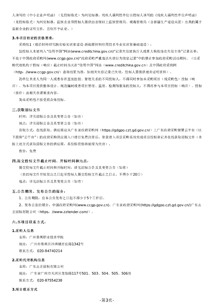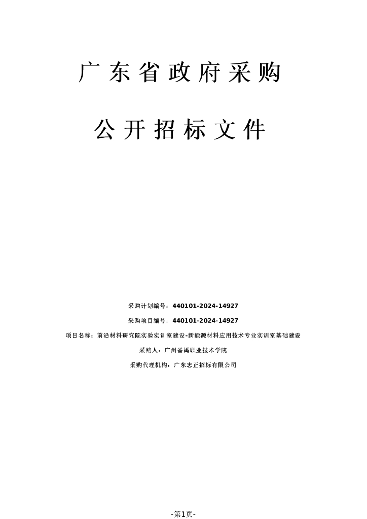 广东省政府采购公开招标文件:前沿材料研究院实验实训室建设-新能源材料应用技术专业实训室基础建设.pdf