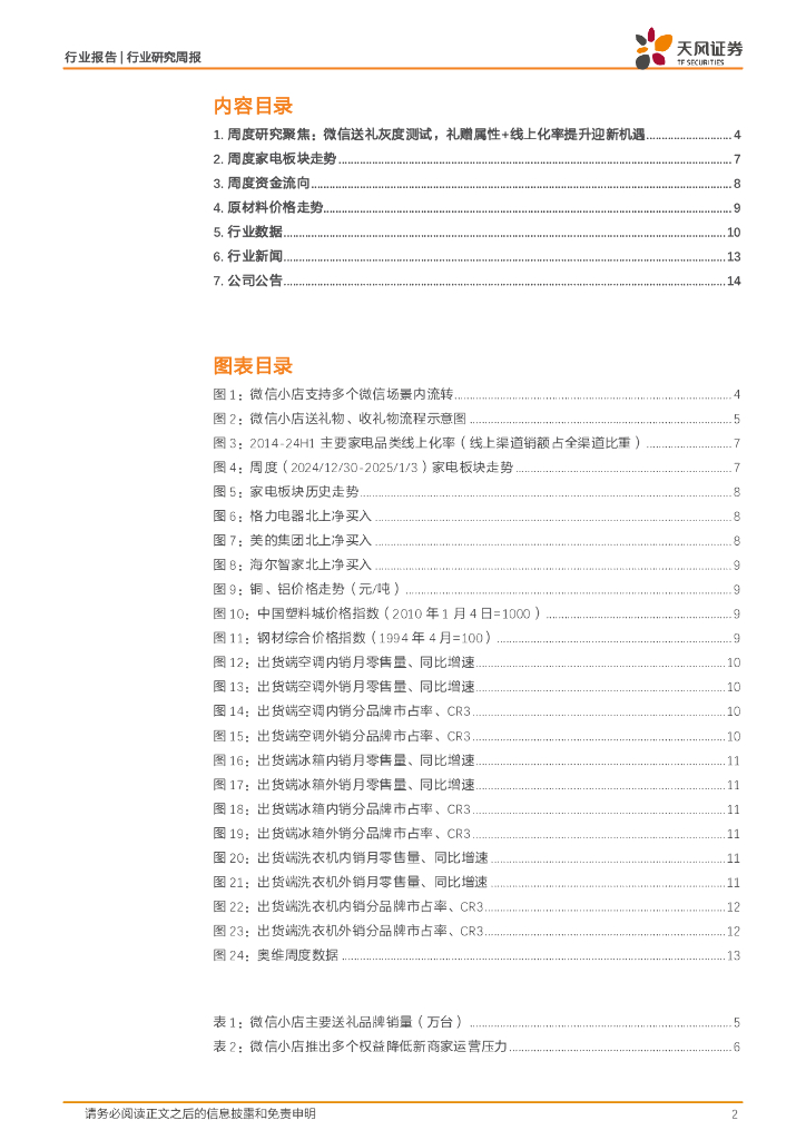天风证券:家用电器行业25W1周度研究:微信送礼灰度测试,礼赠属性+线上化率提升迎新机遇.pdf