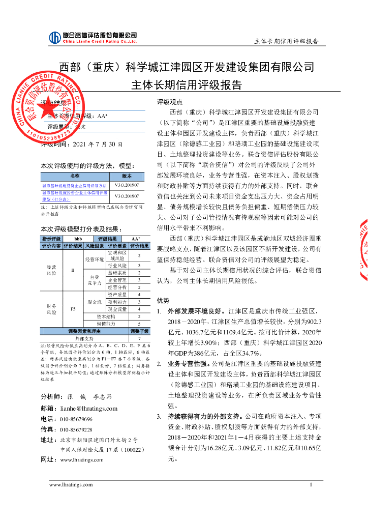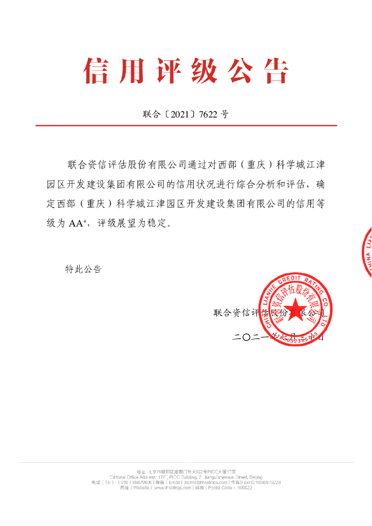 联合资信:西部(重庆)科学城江津园区开发建设集团有限公司主体长期信用评级报告.pdf