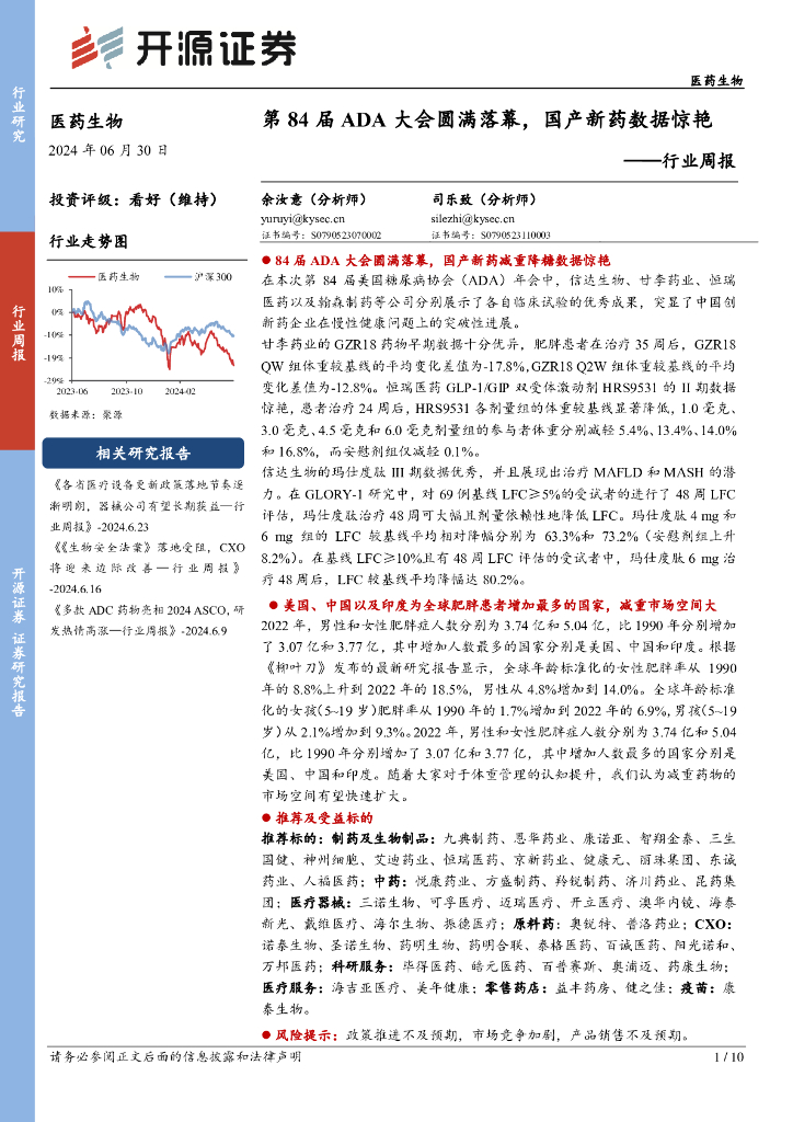 开源证券:医药生物行业周报:第84届ADA大会圆满落幕,国产新药数据惊艳.pdf