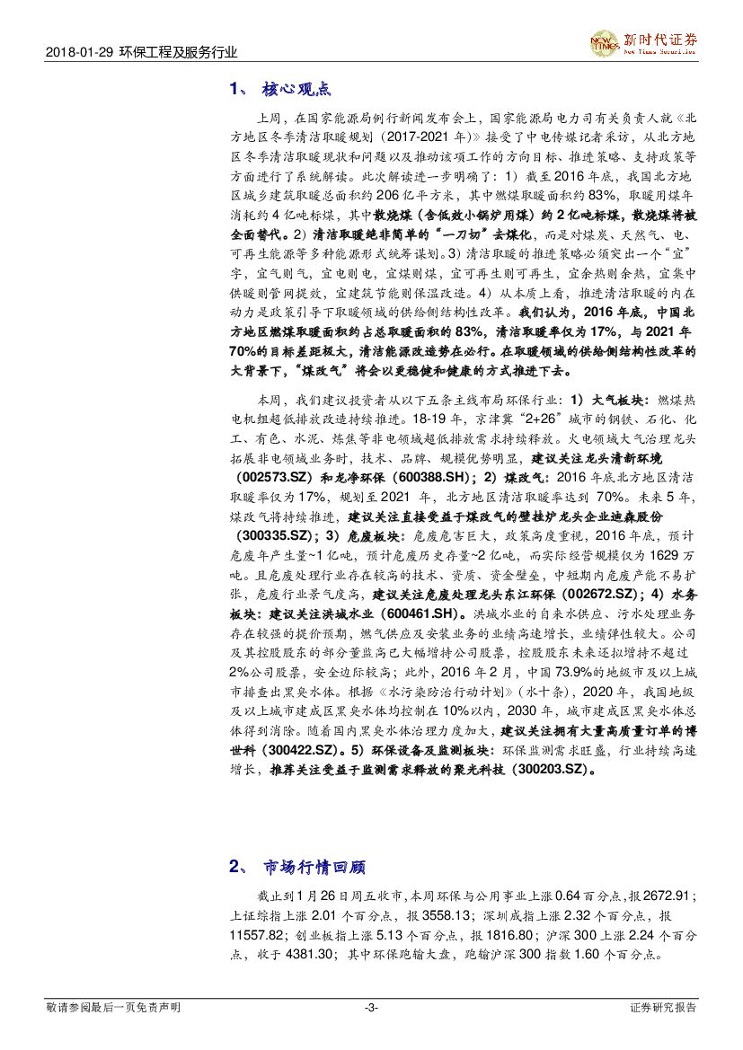 新时代证券:环保工程及服务行业研究周报:北方清洁取暖占比过低,清洁能源改造势在必行.pdf