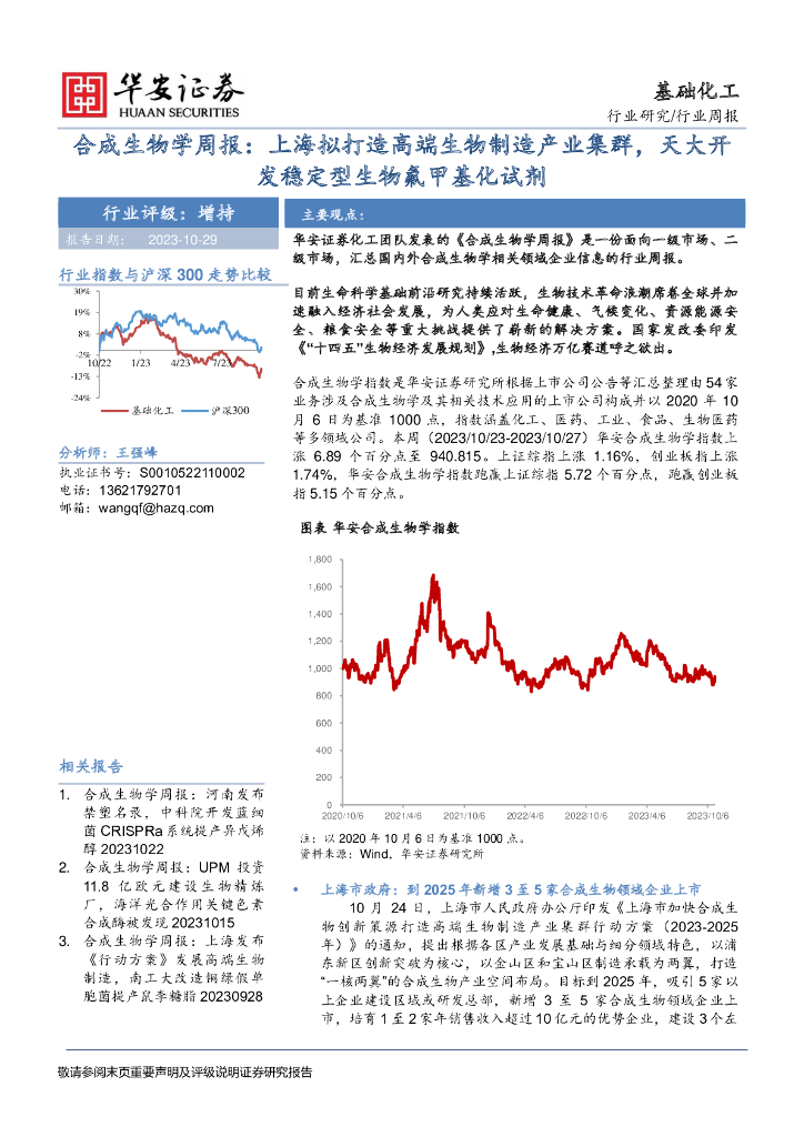 华安证券:合成生物学周报:上海拟打造高端生物制造产业集群,天大开发稳定型生物氟甲基化试剂.pdf