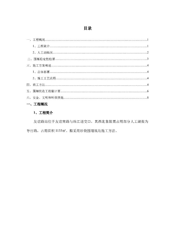 人工湖砂袋围堰筑岛施工方案.doc