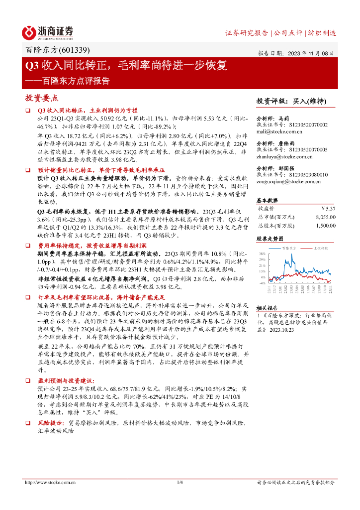 浙商证券:百隆东方点评报告:Q3收入同比转正,毛利率尚待进一步恢复.pdf