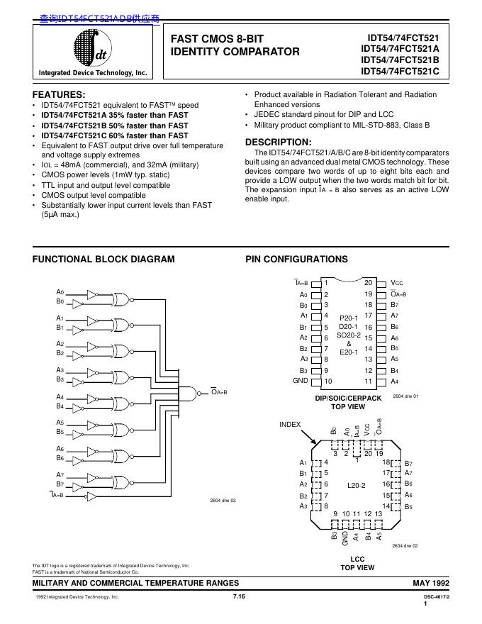 idt IDT54/74FCT521, IDT54/74FCT521A, IDT54/74FCT521B, IDT54/74FCT521C 数据手册.pdf
