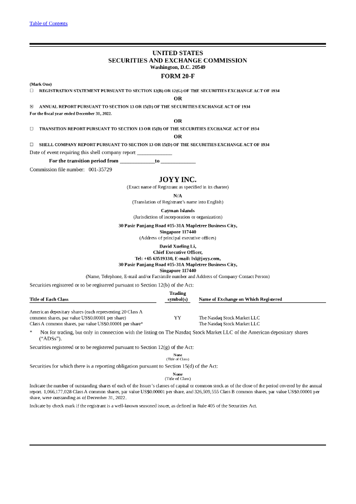 JOYY Inc.(YY)2022财年年度报告(英文版).pdf