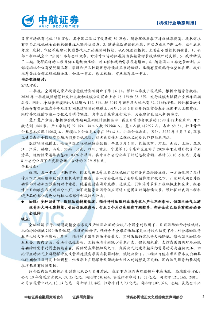 中航证券:机械行业周报:一万亿元专项债限额再次提前下达撑基建,多重利好下油价边际反弹.pdf