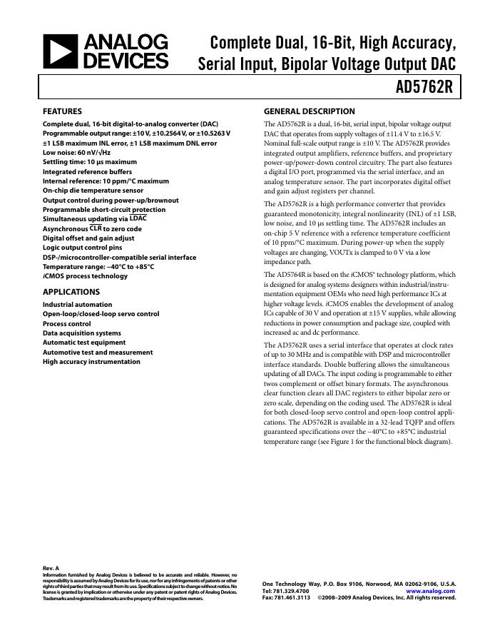 ANALOG DEVICES AD5762R 数据手册.pdf