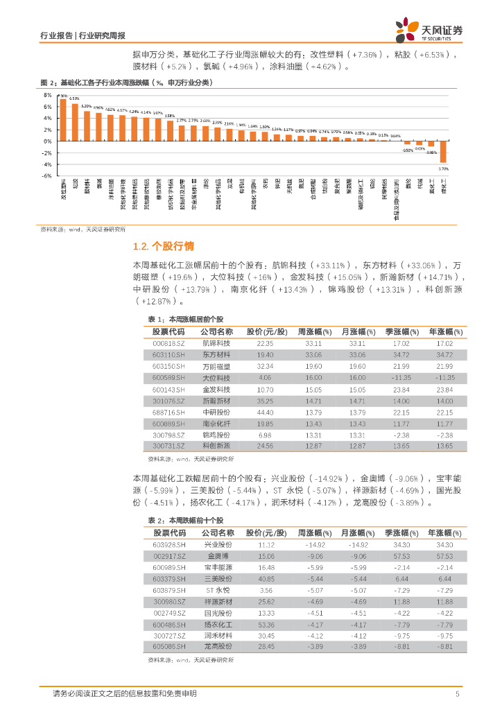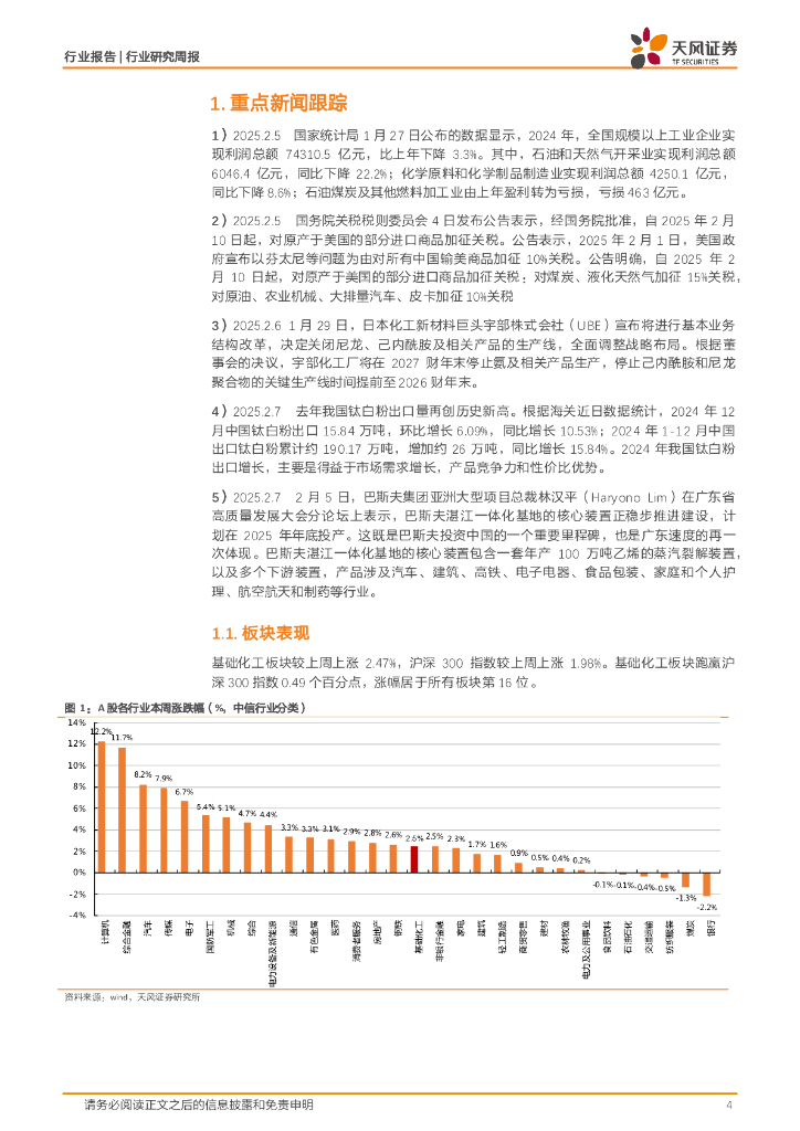 天风证券:基础化工行业研究周报:2024年化学原料和化学制品制造业实现利润总额4250.1亿元,TDI、纯MDI、化肥、烧碱价格上涨.pdf