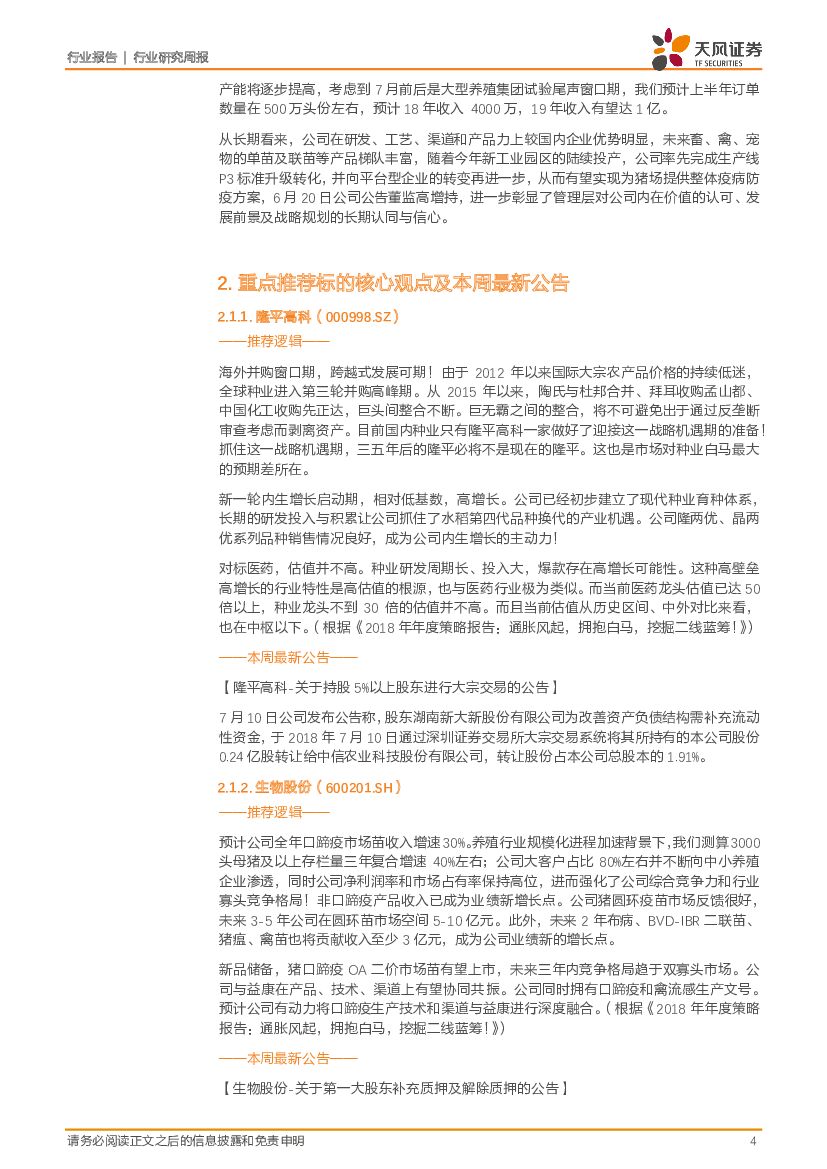 天风证券:农林牧渔2018年第28周周报:近期重点推荐养殖!高景气禽链+底部布局养猪!.pdf
