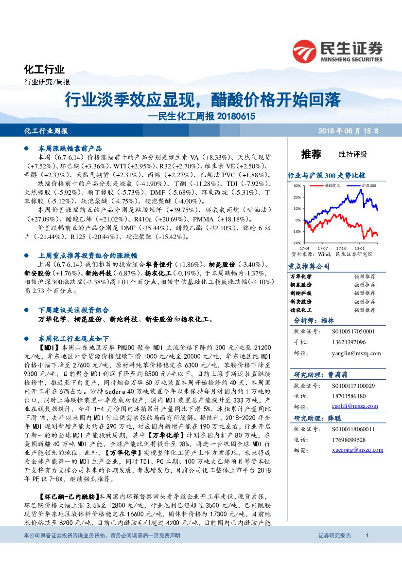 民生证券:化工周报:行业淡季效应显现,醋酸价格开始回落.pdf