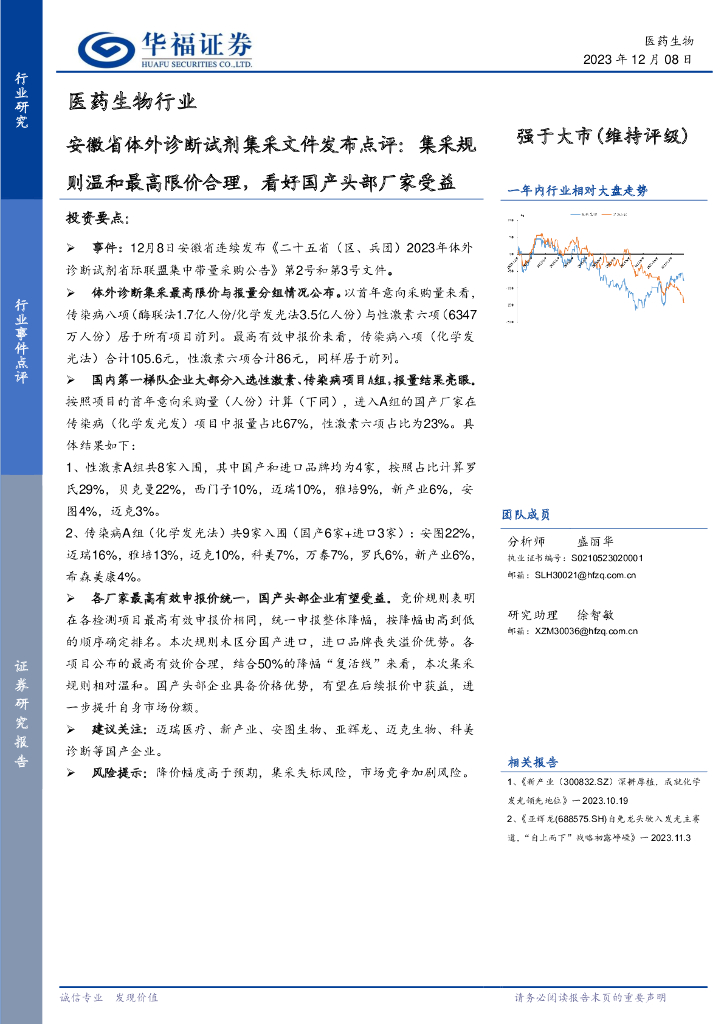 华福证券:医药生物行业:安徽省体外诊断试剂集采文件发布点评:集采规则温和最高限价合理,看好国产头部厂家受益.pdf
