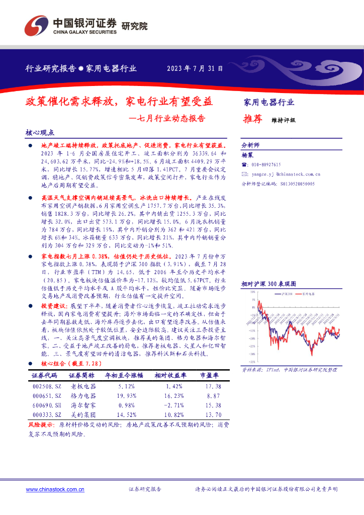 中国银河:家用电器行业七月行业动态报告:政策催化需求释放,家电行业有望受益.pdf