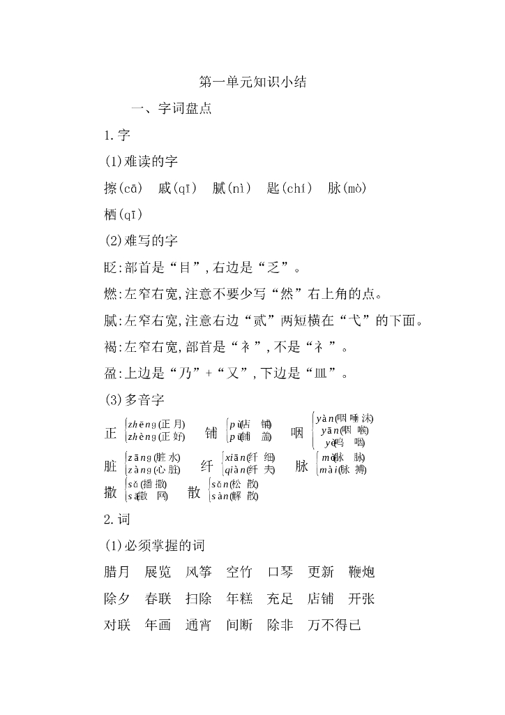 统编语文六年级下册第一单元知识小结.doc