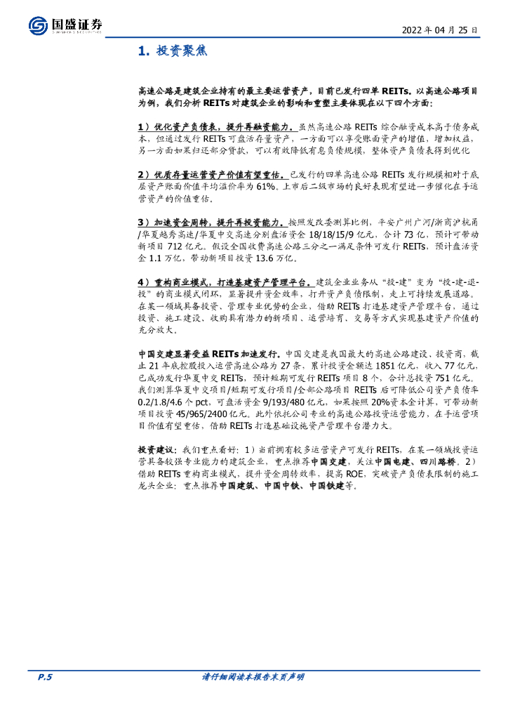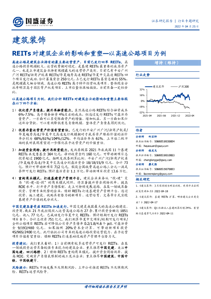 国盛证券:建筑装饰行业专题研究:REITs对建筑企业的影响和重塑—以高速公路项目为例.pdf