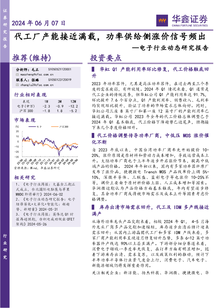华鑫证券:电子行业动态研究报告:代工厂产能接近满载,功率供给侧涨价信号频出.pdf
